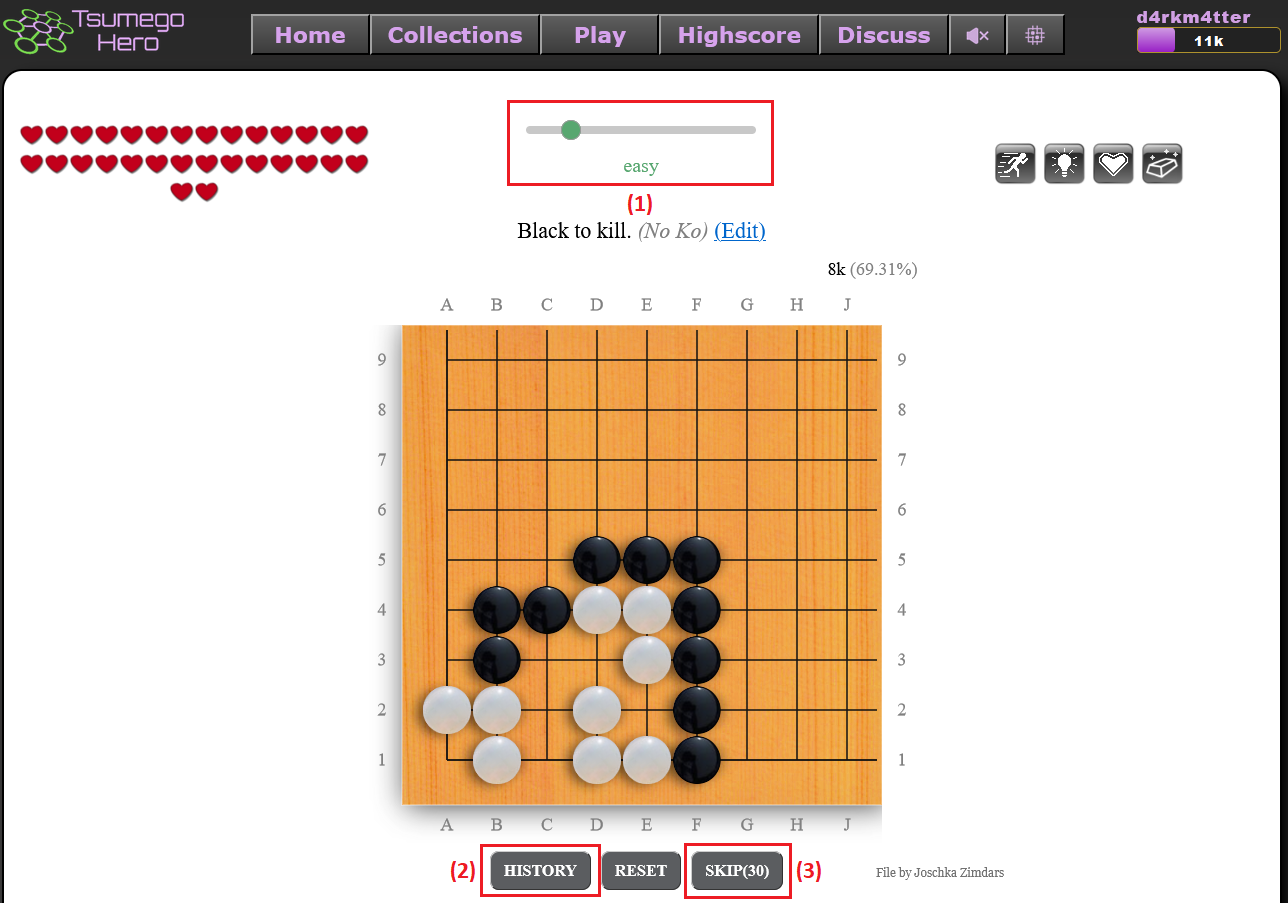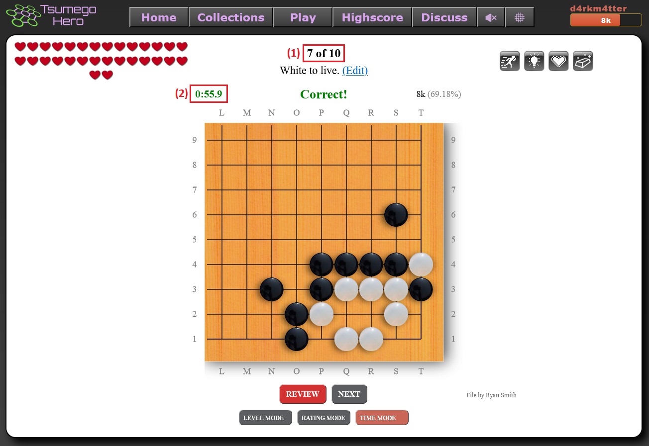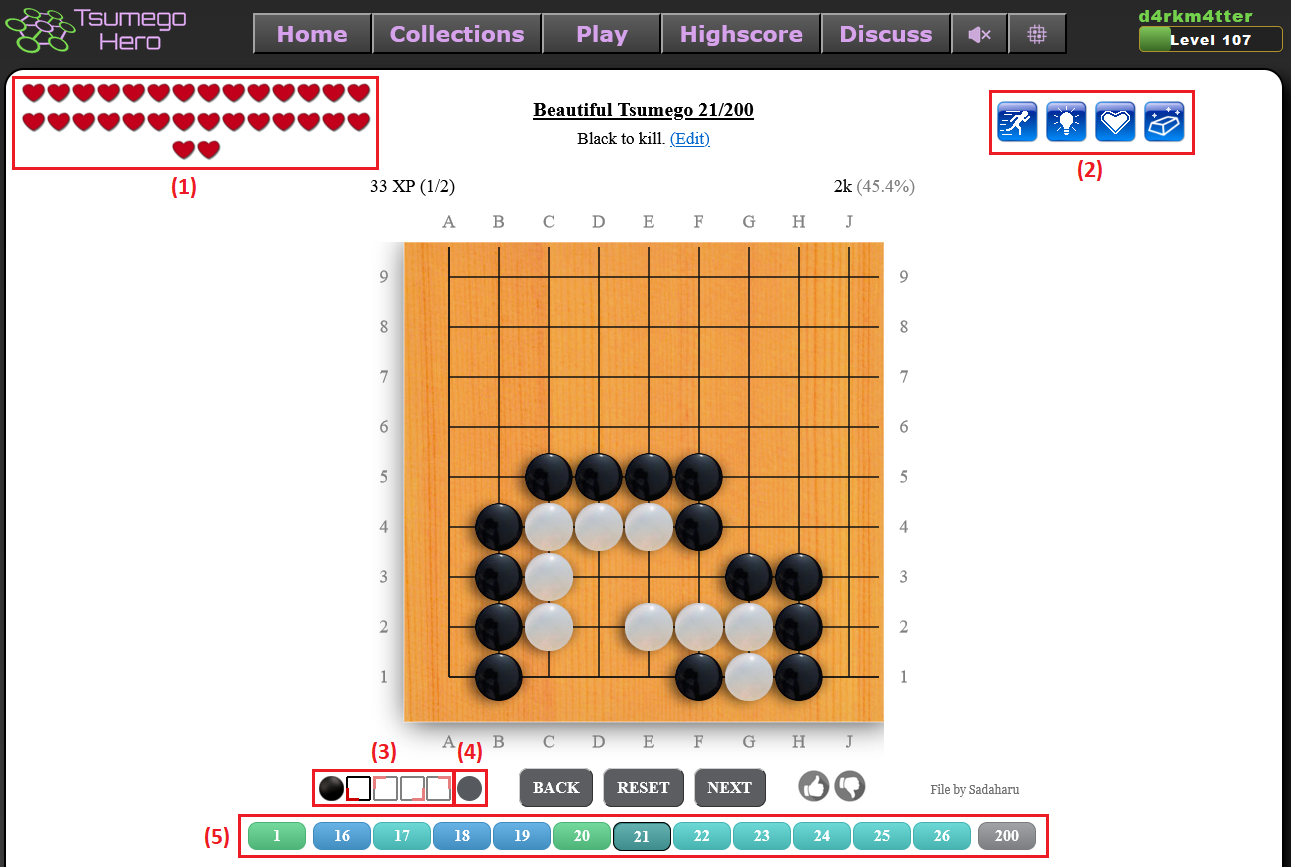 Golden This is a golden tsumego. It gives eight times more XP than usual. If you fail, it disappears. |